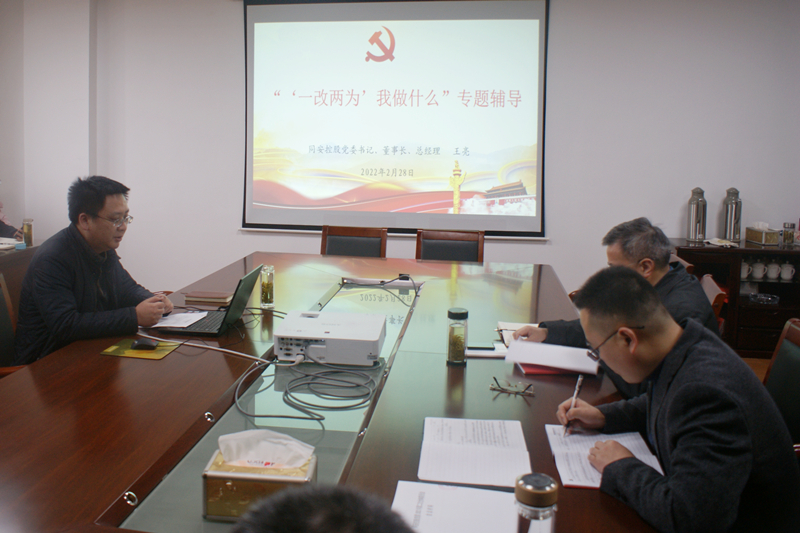為進一步推動全省改進工作作風為民辦實事為企優(yōu)環(huán)境大會精神在公司走深走實、落地生根,2月28日下午,公司黨委書記、董事長、總經(jīng)理王亮作“‘一改兩為’我做什么”專題輔導,并主持召開專題研討會。公司領導班子成員,各黨支部書記,各部室(子公司)主要負責人,機關黨支部全體黨員、入黨積極分子參加會議。