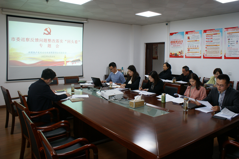 2022年4月18日,公司黨委書記、董事長、總經理王亮主持召開市委巡察反饋問題整改落實“回頭看”專題會。公司領導班子成員,各黨支部書記、各部室(子公司)主要負責人參加會議。