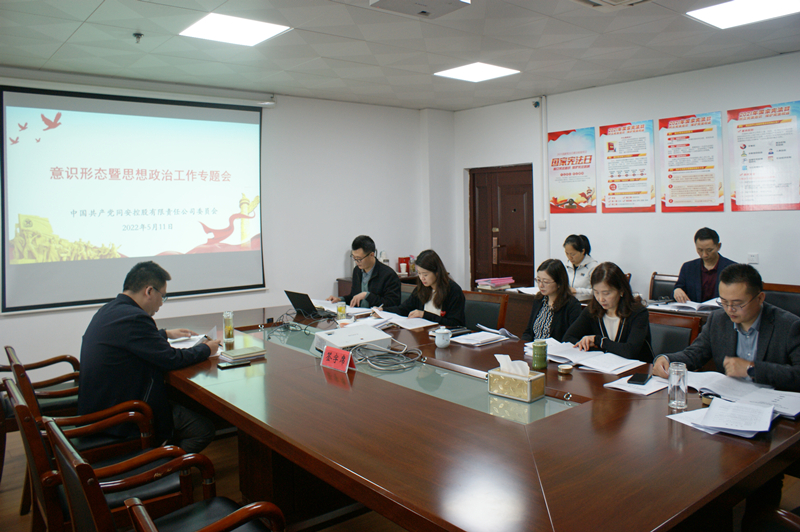 會(huì)議強(qiáng)調(diào),要始終堅(jiān)持以習(xí)近平新時(shí)代中國特色社會(huì)主義思想為指導(dǎo),全面貫徹落實(shí)黨的十九大和十九屆歷次全會(huì)精神,以迎接、宣傳、貫徹黨的二十大為主線,及時(shí)跟進(jìn)學(xué)習(xí)習(xí)近平總書記最新重要講話指示精神和黨中央、省委、市委重大決策部署精神,自覺運(yùn)用黨的百年奮斗歷史經(jīng)驗(yàn),弘揚(yáng)偉大建黨精神,不斷鞏固拓展黨史學(xué)習(xí)教育成果。要始終聚焦中心工作主線,全面壓緊壓實(shí)各層級(jí)主體責(zé)任,牢牢把握意識(shí)形態(tài)工作領(lǐng)導(dǎo)權(quán),緊繃思想之弦、樹牢底線思維,以極端負(fù)責(zé)的精神做好極端重要的工作,內(nèi)化于心、外化于行,奮力開創(chuàng)公司意識(shí)形態(tài)工作新局面,為扎實(shí)穩(wěn)步推進(jìn)公司各項(xiàng)重點(diǎn)工作任務(wù)創(chuàng)造有力的思想保證、積極的輿論支持和穩(wěn)定的工作環(huán)境,以實(shí)際行動(dòng)迎接黨的二十大勝利召開。